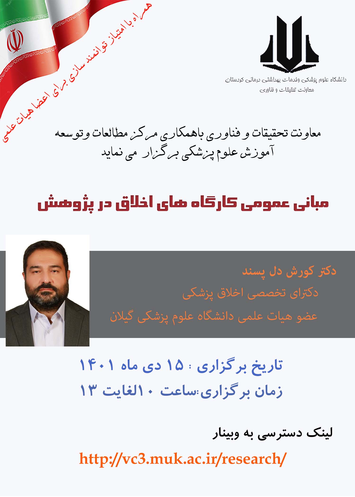 ساعت 11 به صورت مجازی در نرم افزار Adobe connect با آدرس vc.muk.ac.ir/amoozesh بیمارستان بعثت |